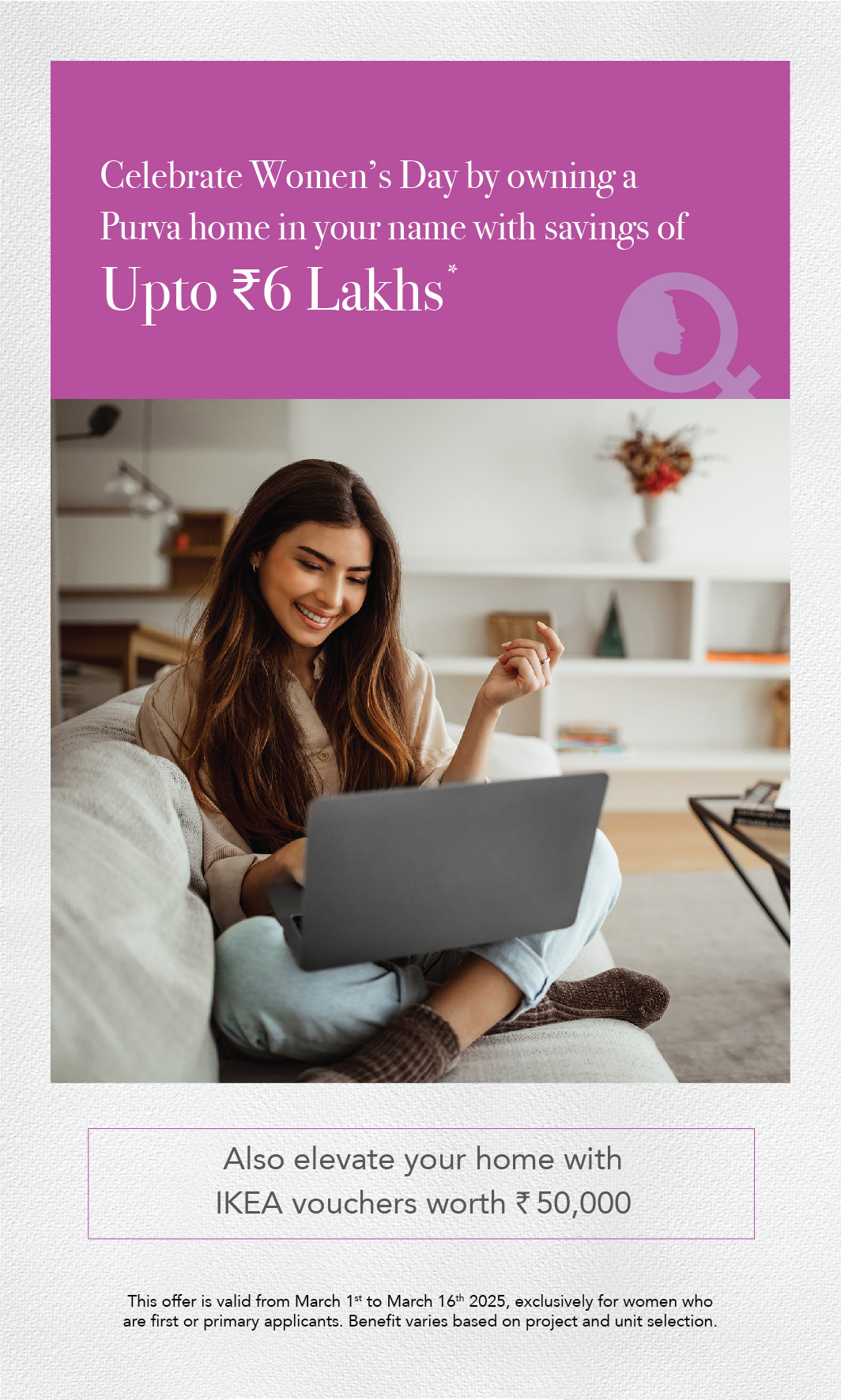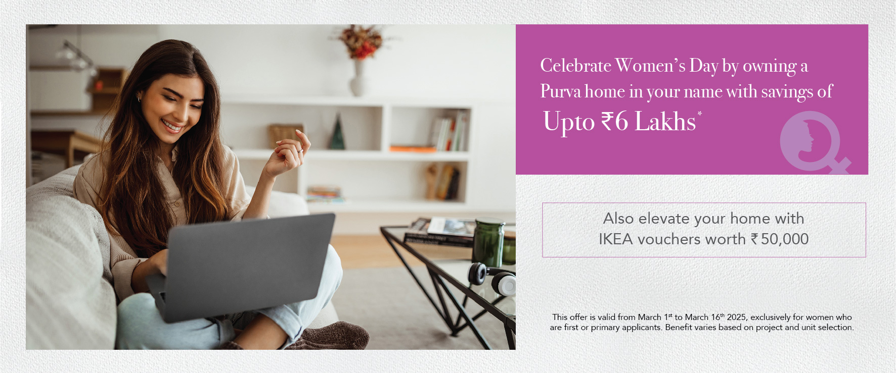 Elevate your home with IKEA vouchers, available on all bookings as part of Puravankara’s Women’s Day initiative.