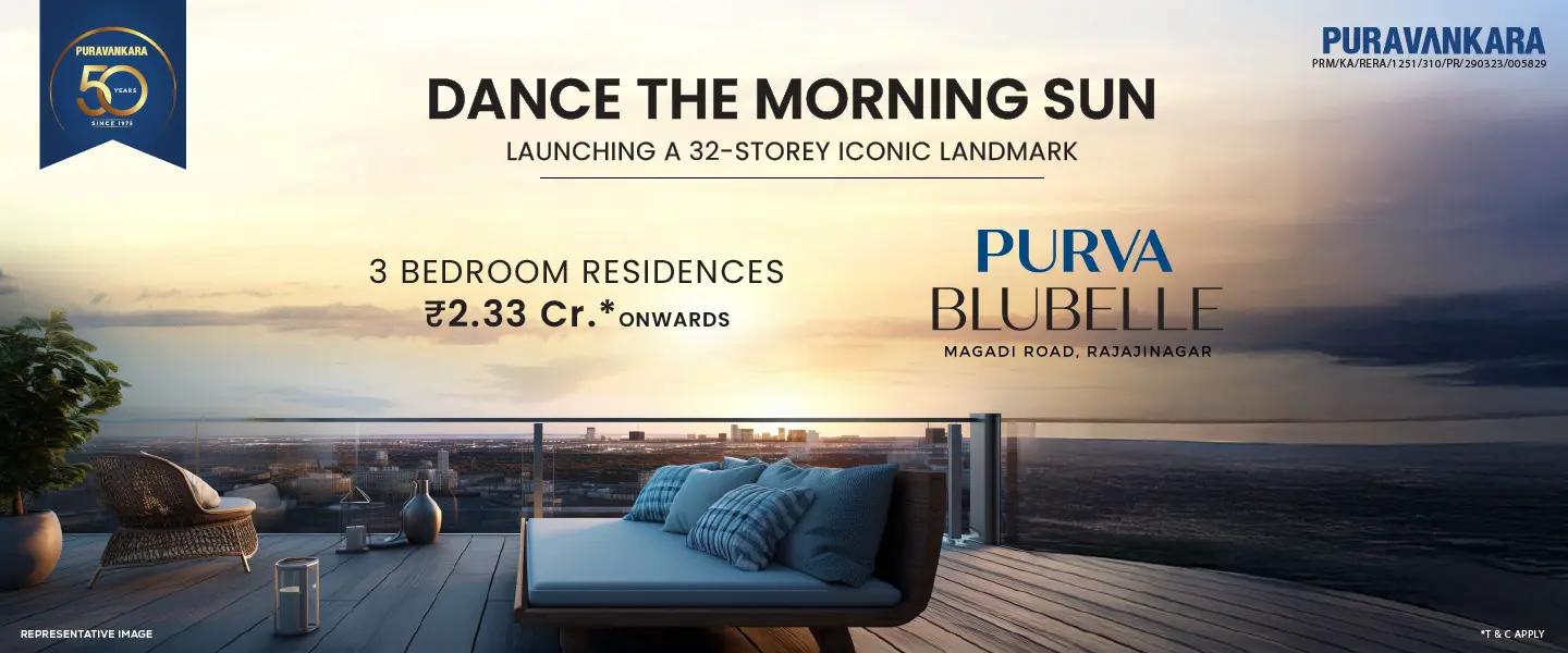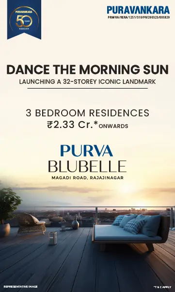 Nestled in verdant surroundings along Magadi Main Road in West Bengaluru, Purva Blubelle enjoys a prime location just a stone's throw away from Magadi Road Metro Station and a mere 550 meters from GT World Mall and Gurukula International School.