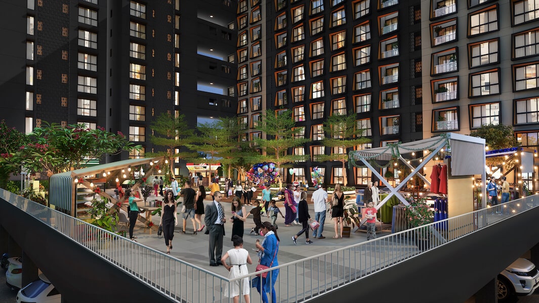 Located near Manyata Tech Park, Purva Atmosphere offers prime North Bengaluru living with amenities like the Sky Club on the 34th floor, crowning the central tower and connecting to the landscaped terraces of the other two towers. Terraces feature mesmerizing sky gardens, decks, play areas, and panoramic views. The club boasts unique features like a glass sky bridge and cantilever viewing areas for stunning cityscape vistas.