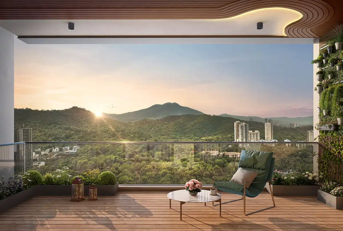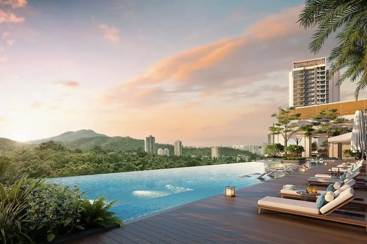 An infinity pool with uninterrupted views of Sanjay Gandhi National Park from ~80 feet height.