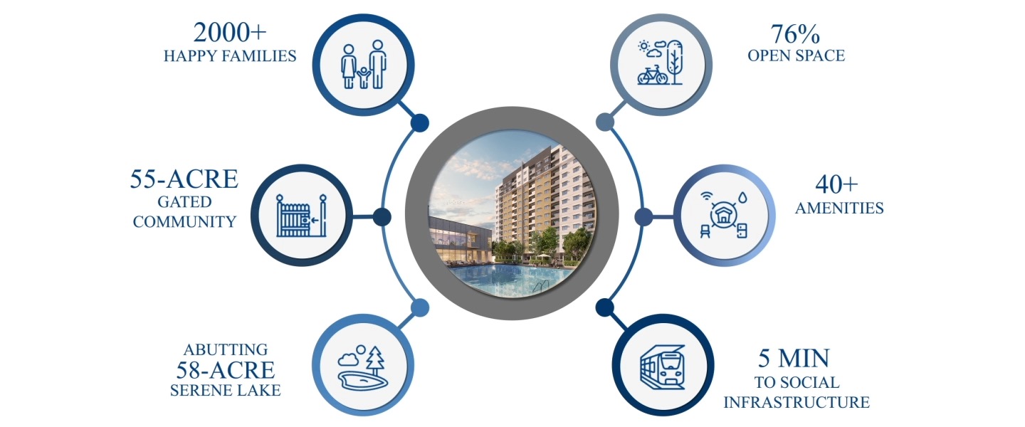 The project spans across 55 Acres complemented by facilities like Swimming Pool, Children's Play Area, Table Tennis, Billiards, Squash Court, Yoga Room, Landscaped Garden, Tennis Court & More.