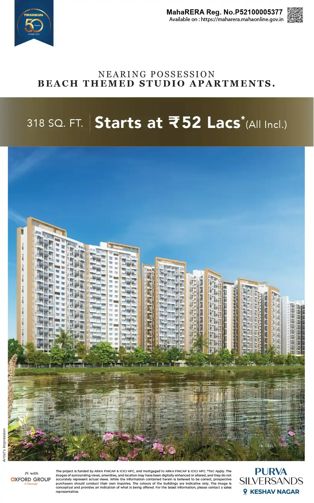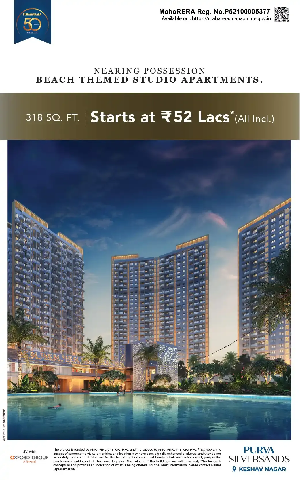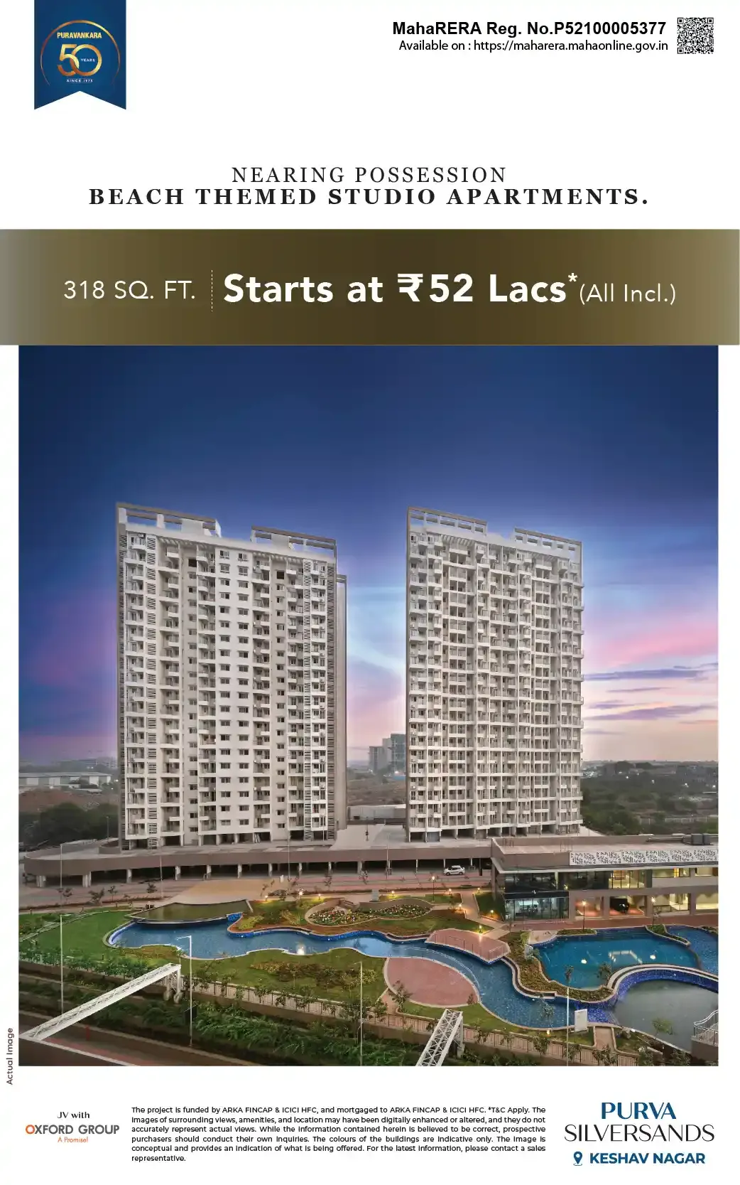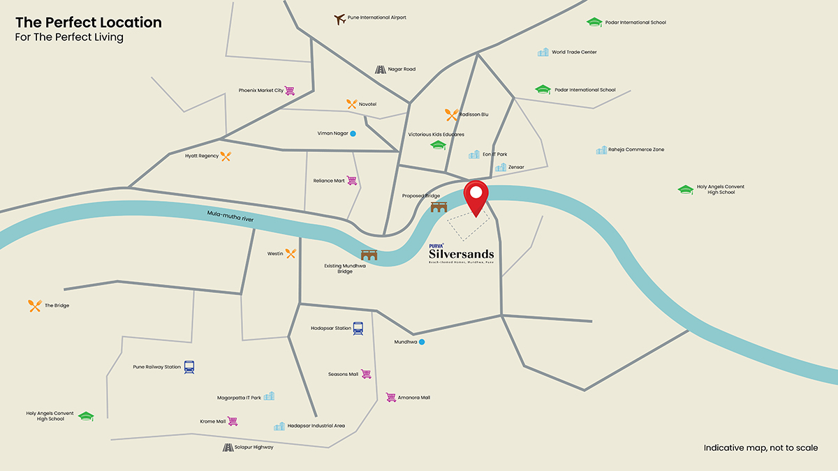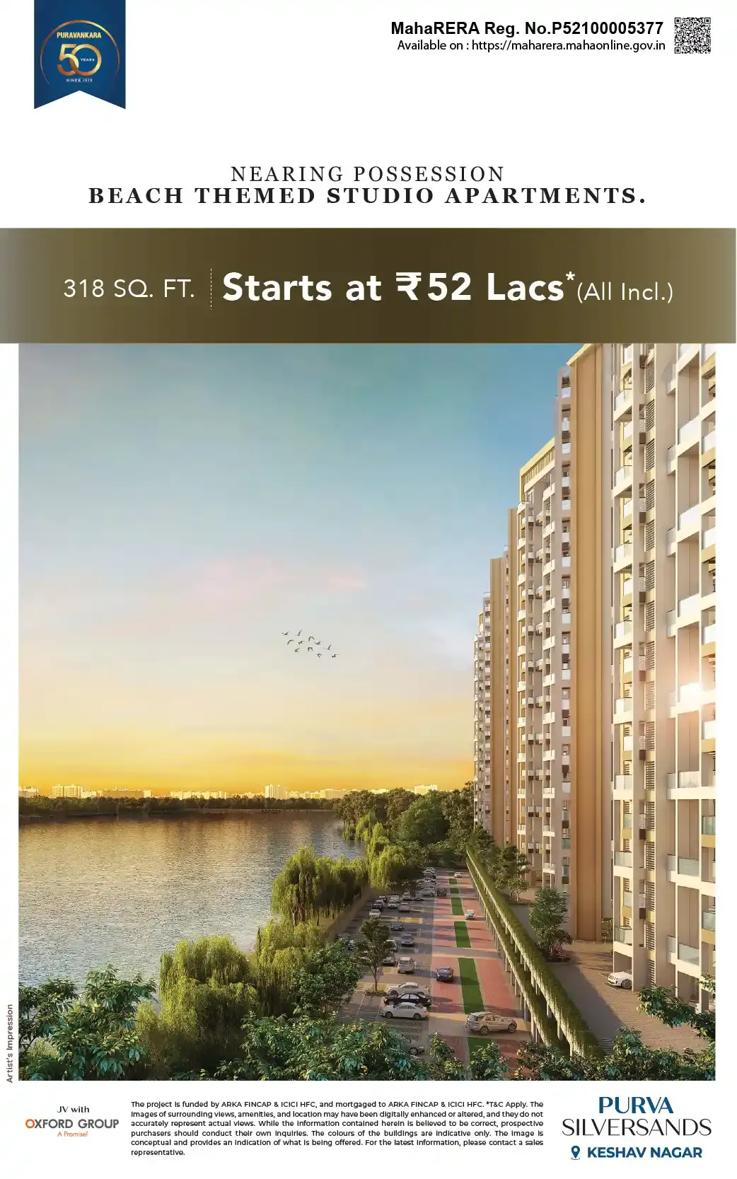 Choose from a range of living spaces, including Studio apartments and managed residences with stunning views of the lagoon, river, golf course, and the city. Say goodbye to the hustle of Pune and embrace the beach lifestyle at Purva Silversands.